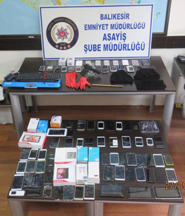 Balıkesir’de cep telefonu bayisini soymaya çalışan 4 hırsızla, polis arasında film sahnelerini aratmayan kovalamaca yaşandı. Edinilen bilgiye göre, soygun girişimi Balıkesir’de bulunan bir cep telefonu dükkanında meydana geldi. Akşam saatlerinde dükkanın kapanmasının ardından şüpheli şahıslar, iş yerinin bulunduğu bölgeye gelerek incelemelerde bulundu. Gecenin ilerleyen saatlerinde hırsızlar araçlarını sokağın giriş kısmında durdurarak, iş yerinin camını kırmaya çalıştı. Oluşan hasar sonrası cama tekme ve yumruk atan hırsızlar, camı kırarak içeriye girdi. Hırsızlar mağazadan 2 çuval elektronik malzeme, 10-15 adet sıfır cep telefonu, 20-30 adet 2. el telefon ve aksesuarları alarak olay yerinden koyu renkli araçları ile Bursa istikametine doğru kaçmaya çalıştı. Bursa yolu uygulama noktasında polisin önlem aldığını fark eden hırsızlar kendilerini takip eden polis aracını da düşünerek refüjün üstünden ters yöne girip Bursa istikametine doğru hızla ilerleyerek, bir et lokantasının 150 metre ilerisinde aracı bıraktı. Aracı bırakarak yaya olarak uzaklaşmaya çalışan hırsızlardan 2’si et lokantasının alt kısmında bulunan harabe binalar içinde saklanırken yakalandı. Polis ekipleri araçta yaptıkları aramada çalınan malzemeleri ve aracın 50 metre ilerisinde kuru sıkı tabancadan bozma silah, 1 çift eldiven ve 2 adet kar maskesi kayalığın altına gizlenmiş vaziyette bulundu. Polis ekiplerinin araçtan kaçan 2 kişinin aranmasına devam ettiği öğrenildi. (İHA)