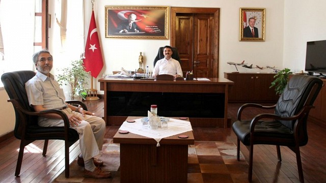 Edremit Körfez Ulu Camii ve Külliyesi Yaptırma Yaşatma Eğitim Kültür Derneği (EKUKDER) Başkanı Muhammet Lütfü Karamanoğlu, Edremit Kaymakamı Turgay Ünsal’ı makamında ziyaret etti. İlçemiz İbrahimce Mahallesinde yaptırılması planlanan Cami İnşaatı ile ilgili bilgilerin paylaşıldığı ziyaretten duyduğu memnuniyeti dile getiren Kaymakam Ünsal, EKUKDER Başkanı Muhammet Lütfü Karamanoğlu’na teşekkür etti.