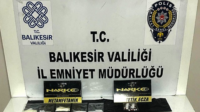“1-) Balıkesir İl Emniyet Müdürlüğü Narkotik Suçlarla Mücadele birimince 25.06.2025 günü İl merkezinde yürütülen çalışmalarda, 60 gram metamfetamin, 23 adet sentetik Ecza hap, Suçtan elde edildiği değerlendirilen 10.050 TL para ele geçirilmiştir. Konuyla ilgili yakalanan 3 şahıs hakkında "Uyuşturucu veya Uyarıcı Madde İmal ve Ticareti Yapma" suçundan işlem başlatılmıştır.
