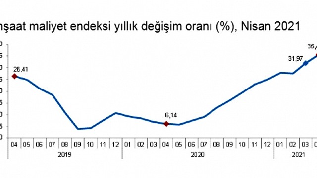 TÜİK Balıkesir Bölge Müdürlüğünden alınan bilgilere göre, “İnşaat maliyet endeksi, 2021 yılı Nisan ayında bir önceki aya göre %3,54, bir önceki yılın aynı ayına göre %35,48 arttı. Bir önceki aya göre malzeme endeksi %4,89, işçilik endeksi %0,53 arttı. Ayrıca bir önceki yılın aynı ayına göre malzeme endeksi %43,07, işçilik endeksi %20,62 arttı. Bina inşaatı maliyet endeksi yıllık %34,63, aylık %3,61 arttı Bina inşaatı maliyet endeksi, bir önceki aya göre %3,61, bir önceki yılın aynı ayına göre %34,63 arttı. Bir önceki aya göre malzeme endeksi %5,02, işçilik endeksi %0,56 arttı. Ayrıca bir önceki yılın aynı ayına göre malzeme endeksi %41,77, işçilik endeksi %20,92 arttı. Bina dışı yapılar için inşaat maliyet endeksi yıllık %38,42, aylık %3,29 arttı Bina dışı yapılar için inşaat maliyet endeksi, bir önceki aya göre %3,29, bir önceki yılın aynı ayına göre %38,42 arttı. Bir önceki aya göre malzeme endeksi %4,46, işçilik endeksi %0,41 arttı. Ayrıca bir önceki yılın aynı ayına göre malzeme endeksi %47,57, işçilik endeksi %19,49 arttı.” Denildi.
