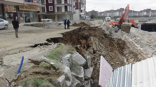 Balıkesir’in Edremit ilçesinde yıkım işlemleri devam eden bir AVM’nin istinat duvarı, yanındaki yol ile birlikte çöktü. Çökme anı kameralara an be an yansıdı. Edinilen bilgiye göre, Akçay Caddesi 570 sokakta bir süreden bu yana atıl olduğu için yıkımı gerçekleştirilen eski bir AVM’de sabah saatlerinde istinat duvarının olduğu bölümde çatlamalar meydana geldi. İstinat duvarı yanına park eden araçlar polis tarafından çekiciler ile kaldırıldı. Daha sonra istinat duvar büyük bir gürültü ile çöktü. Çökme ile birlikte duvarın bulunduğu sokağın bir kısmı da çöktü. Yetkililerin zamanında müdahalesi ile park halindeki 6 araç çöken yolla birlikte zarar görmekten son anda kurtarıldı. Yetkililer çökme olan yolu trafiğe kapatırken yıkımı gerçekleştiren firma ise moloz ve enkaz temizleme çalışmalarına hemen başladı. (İHA)