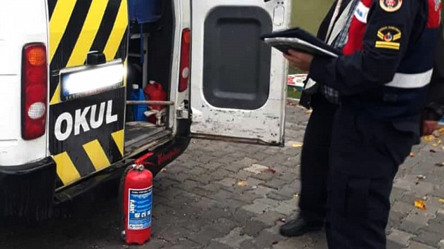 Balıkesir İl Jandarma Komutanlığına bağlı Trafik Timleri, il genelinde okul servis araçlarını denetledi. Denetlenen 610 servis aracından 6'sı trafikten men edildi. Balıkesir İl Jandarma Komutanlığına bağlı Trafik Timleri tarafından okul taşıtlarının karıştığı trafik kazalarını önlemek, çocukların güvenli bir trafik ortamında eğitim ve öğretimlerini sürdürebilmesi maksadıyla denetim yapıldı. Okul taşıtlarında öğrencilerin güven içinde seyahat etmelerini sağlamak için yapılan trafik denetimi sonucunda 610 okul servis aracı denetlenirken, 21 araca 5 bin 53 TL idari para cezası uygulandı. Eksiklik tespit edilen 6 araç trafikten men edildi. (İHA)
