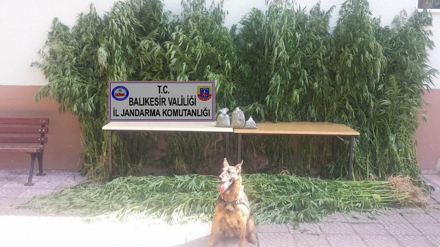 Balıkesir'in Savaştepe ilçesinde bir ihbarı değerlendiren Balıkesir İl Jandarma Komutanlığı ekipleri tarafından bir evde yapılan aramalarda, 160 kök kenevir bitkisi, 1035 gram toz esrar ele geçirildi. Olayla ilgili gözaltına alınan 1 kişi tutuklanarak cezaevine gönderildi. Balıkesir İl Jandarma Komutanlığı ekiplerince, uyuşturucu madde ile mücadele faaliyetleri kapsamında yapılan çalışmalar neticesinde, Savaştepe ilçesi Yukarı Danışment Mahallesi'nde ikamet eden A.Ç. isimli şahsın evinin bahçesinde kenevir bitkisi yetiştirildiğine dair alınan ihbar üzerine 29 Haziran’da şüphelinin ev ve bahçesinde uyuşturucu madde arama köpeği "Çıtır"ın da katıldığı arama sonucunda, evin bahçe kısmında 160 kök kenevir bitkisi ve ev içerisinde 1035 gram toz esrar maddesi ele geçirildi. Olayla ilgili gözaltına alınan A.Ç. tutuklanarak cezaevine gönderildi. (İHA)
