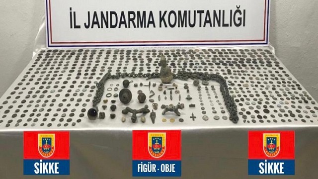 Balıkesir İl Jandarma Komutanlığı ekipleri merkez ve İlçeler’de; emniyet, asayiş ve kamu düzeninin sağlanmasına yönelik çalışmalara aralıksız olarak devam ediyor. Balıkesir İl Jandarma Komutanlığınca, kültür ve tabiat varlıkları kaçakçılığına yönelik yapılan istihbari çalışmalar neticesinde, Bandırma ilçesinde (1) şüphelinin elinde bulunan tarihi eserleri satmak istediğinin tespiti üzerine şüphelinin ev ve eklentilerinde yapılan aramada; (2.130) adet Roma dönemine ait sikke, (52) adet roma dönemine ait obje/figür olmak üzere (2.182) adet tarihi eser ele geçirilmiştir. Olayla karışan şüpheli yakalanarak hakkında yasal işlem başlatılmıştır. Haber: Aydın DEMİRKAYA