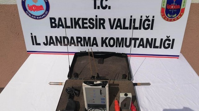 Balıkesir'in Dursunbey ilçesinde izinsiz kazı yapan bir kişi suç üstü yakalandı. Gelen bir istihbarat sonrası harekete geçen jandarma, Dursunbey'e bağlı Çınar Mahallesi'ne giden orman yolu üzerindeizinsiz kazı yapan H.Ö. isimli şahsı suç üstü yakaladı. İzinsiz kazı yapılan bölgede bulunan şüpheliye ait araca, detektöre, batarya ve şarj makinesine el konuldu. Şüpheli H.Ö. hakkında işlem başlatıldı. (İHA)