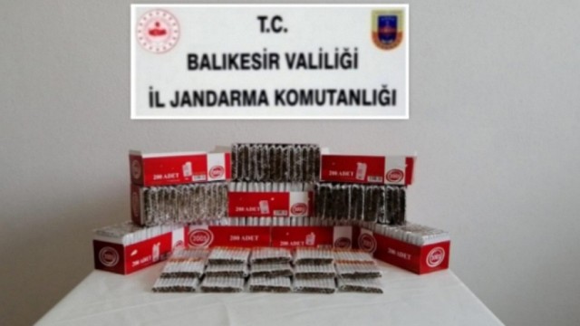 Balıkesir İl Jandarma Komutanlığınca, Gönen ilçesinde kaçak ve bandrolsüz sigara ticaretine yönelik yapılan istihbari çalışmalar neticesinde Ş.D., E.B. ve A.A. isimli şahıslara ait ev ve işyerlerinde yapılan aramalarda; 5 adet otomatik sigara doldurma makinesi, 100 adet manuel sigara sarma makinesi, 125 kg kıyılmış tütün, 110.000 adet dolu makaron, 75.000 adet boş makaron, 5.000 adet sigara sarma kağıdı, 75.000 adet sigara naylon poşeti, 4 adet av tüfeği, 1 adet 7,65 mm tabanca ile bu tabancaya ait 50 adet fişek, 3 adet kurusıkı tabanca ve 2 adet komando bıçağı ele geçirildi. Olayla ilgili olarak Cumhuriyet Savcılığına bilgi verilmiş olup alınan talimat ile ele geçirilen malzemelere el konularak şüpheliler hakkında adli tahkikata başlanıldığı bildirildi. Haber: Pervin BÖLÜKBAŞI