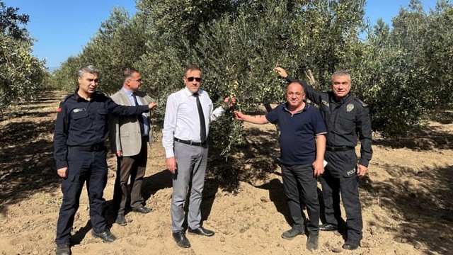 Burhaniye Kaymakamı İlyas MEMİŞ, zeytin hasat sezonunun başlamasıyla Çoruk Mahallesi’ni ziyaret ederek Sarıbaş Süt ve Zeytin Ürünleri Firmasına ait olan zeytin bahçesinde zeytin hasadına katıldı. Zeytin hasadında çalışan işçilerin istek ve taleplerini dinleyen Kaymakam İlyas MEMİŞ, işçilerle bir süre sohbet ederek zeytin hasadı yaptı. Kaymakam MEMİŞ, zeytin bahçesinde incelemelerde bulunarak İlçe Tarım Müdürü Bora TAMER ve Sarıbaş Süt ve Zeytin Ürünleri Firma sahibi Hüseyin SARIBAŞ’tan bilgi aldı. Ziyarette Kaymakam İlyas MEMİŞ’e İlçe Emniyet Müdürü Faik KARABAŞ, İlçe Jandarma Komutanı Ünal BAYHAN ve İlçe Tarım Müdürü Bora TAMER eşlik etti. (Bülten)