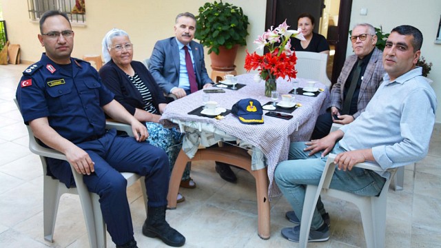 Edremit Kaymakamı Ahmet Odabaş, Şehit ve Gazi Ailelerimizi gerçekleştirdiği ziyaretlerine devam ediyor. Edremit Kaymakamı Ahmet ODABAŞ, İlçe Jandarma Komutanı Yarbay Serkan ÖZDEMİR, Halk Eğitim Müdürü Nahit DENİZ ve Tahtakuşlar Mahalle Muhtarı Kadir Sürgüt ile birlikte Tahtakuşlar mahallemizde yaşayan, Kıbrıs Gazisi İbrahim Kocabıyık'ın eşi Senem teyzeyi ziyaret etti. Haber: Hasan AKAR