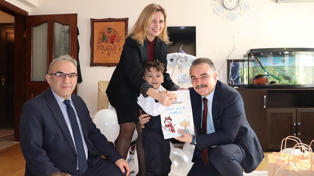 2025-2026 Eğitim-Öğretim yılının birinci döneminin sona ermesiyle birlikte, Kaymakam Ahmet ODABAŞ, evde eğitim alan öğrencilerimizi bu heyecanlı günlerinde yalnız bırakmadı. Kaymakam Ahmet ODABAŞ, beraberinde İlçe Millî Eğitim Müdürü Ramazan ESMEN ve Şube Müdürü Mesut POLAT ile birlikte, Kadıköy Zehra Baysal Anaokulu bünyesinde evde eğitim gören öğrencilerimiz Sergen Alp TURAN ve Kayra Mete KARABAĞ’ı ikametlerinde ziyaret etti. Sıcak ve samimi bir ortamda gerçekleşen ziyarette, minik öğrencilerimizin karne heyecanına ortak olundu. Kaymakam ODABAŞ, öğrencilerimizle yakından ilgilenerek karnelerini ve hediyelerini bizzat takdim etti. Eğitimde fırsat eşitliğinin önemine değinen Kaymakam Ahmet ODABAŞ, öğrencilerimize başarılarının devamını diledi. Haber: Hasan AKAR