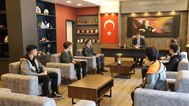Kıvanç Dağ Anadolu Lisesi Tenis Takımı geçtiğimiz gün Edremit Belediye Başkanı Selman Hasan Arslan’ı ziyaret etti. 2019 yılında Bölge Birincisi olan ancak Covid-19 salgın sebebiyle Türkiye Kupası’na gidemeyen Özel Kıvanç Dağ Anadolu Lisesi Kort Tenis Takımı Balıkesir Birincisi olarak hızlı bir çıkış yaptı. Kıvanç Dağ Eğitim Kurumları Kurucusu Kıvanç Dağ, Beden Eğitimi Öğretmeni Can Emre Demir ve Takım Öğrencileri Edremit Belediyesi Sayın Selman Hasan Arslan’ı makamında ziyaret etti. Tebriklerini ileten Edremit Belediyesi Başkanı, bölge ve Türkiye Şampiyonluğu turnuvaları için başarılar diledi. Haber: Huriye AY