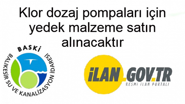 Balıkesir Su ve Kanalizasyon İdaresi Genel Müdürlüğü (BASKİ) Ticaret İşleri Dairesi Başkanlığı tarafından Klor dozaj pompaları için yedek malzeme satın alınacaktır. Basın İlan Kurumu ilan portalı www.ilan.gov.tr internet sitesinde yayınlanan ilana göre: BASKİ Genel Müdürlüğü Hizmet Alanı İçerisinde Bulunan Klor Dozaj Pompaları İçin Yedek Malzeme Alım İşi mal alımı 4734 sayılı Kamu İhale Kanununun 19 uncu maddesine göre açık ihale usulü ile ihale edilecek olup, teklifler sadece elektronik ortamda EKAP üzerinden alınacaktır. İhale; 14 Ocak 2021 tarihinde Saat: 11.00 da BASKİ Genel Müdürlüğü Ek Hizmet Binası Gümüşçeşme Mah. Gökdeniz Cad. No: 43/B Altıeylül/BALIKESİR adresinde yapılacaktır. Detaylı bilgi için tıklayınız