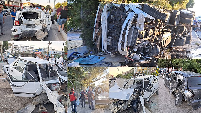 Çanakkale’ye bağlı Küçükkuyu Beldesinde geçtiğimiz gün meydana gelen zincirleme trafik kazasında ortalık adeta savaş alanına döndü. Edinilen bilgiye göre kaza Küçükkuyu Beldesi Ziraat Bankası önünde ışıklarda meydana geldi. İddialara göre seyir halindeki kamyon freninin boşalması sonucu önündeki araçlara çarparak yan yattı. Olay yerine; sağlık, itfaiye ve emniyet güçlerimiz sevk edildi. Edremit İtfaiye Grup Amirliği ve Küçükkuyu İtfaiyesi personellerinin müdahale ettiği kazada yaralı vatandaşlarımız sağlık ekipleri tarafından hastanelere taşındı. Haber: Hasan AKAR