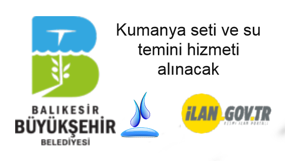Balıkesir Büyükşehir Belediye Başkanlığı tarafından; KUMANYA SETİ VE SU TEMİNİ HİZMETİ ALIMI 4734 sayılı Kamu İhale Kanununun 19 uncu maddesine göre açık ihale usulü ile ihale edilecektir. İhale; 13 Nisan 2022 tarihinde Saat: 11.00’da ESKİKUYUMCULAR MH. MEKİK SK. NO:25 BALIKESİR BÜYÜKŞEHİR BELEDİYESİ 1. KAT 109 NOLU ODA adresinde yapılacaktır. Detaylı bilgi için tıklayınız
