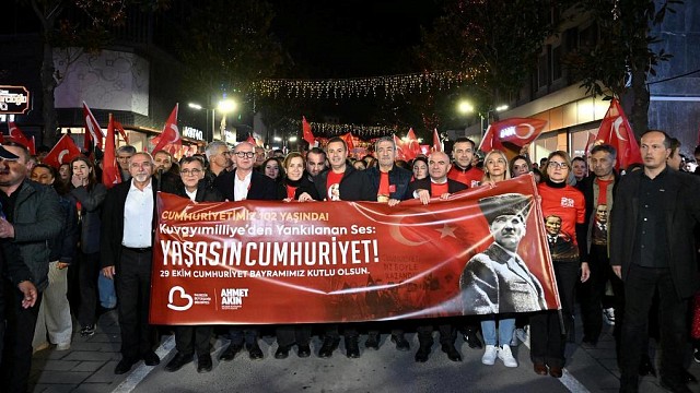 Kuvayımilliye’nin başşehri Balıkesir’de Cumhuriyet’in kuruluşunun 102. yıldönümü coşkuyla kutlandı. On binlerce vatandaşın katıldığı “Cumhuriyet Yürüyüşü” duygu dolu anlara sahne olurken şehrin sokaklarında “Ne mutlu Türk’üm diyene! Mustafa Kemal Atatürk’ün askerleriyiz!” sloganları atıldı. Balıkesir’de 29 Ekim Cumhuriyet Bayramı büyük bir coşkuyla kutlandı. Cumhuriyet’in kuruluşunun 102. yılı vesilesiyle düzenlenen “Cumhuriyet Yürüyüşüne” on binlerce Balıkesirli katıldı. Atatürk Anıtı’ndan başlayan yürüyüş Cumhuriyet Meydanı’nda sona erdi. Cadde ve sokakları kırmızı beyaza boyayan on binlerce Balıkesirli hep bir ağızdan “Mustafa Kemal’in askerleyiz!” sloganları attı. Balıkesir Büyükşehir Belediyesi Kadın Bando Takımı öncülüğünde İzmir Marşı’na hep bir ağızdan eşlik eden vatandaşlar, ellerinde bayraklarla Cumhuriyet Bayramı coşkusunu yaşadı. Bayram sevincinin şehrin her köşesine yayıldığı programda unutulmaz anlar yaşandı. Balıkesirspor takımı da yürüyüşe katılarak Cumhuriyet coşkusuna ortak oldu. Balıkesir Büyükşehir Belediye Başkanı Ahmet Akın ve eşi Arbil Akın’ın katılımıyla gerçekleşen yürüyüşte CHP Balıkesir Milletvekili Serkan Sarı, CHP Balıkesir İl Başkanı Erden Köybaşı, DP Balıkesir İl Başkanı Işın Gümüşyay, Altıeylül Belediye Başkanı Hakan Şehirli, BBB Genel Sekreteri Naki Çetin, BBB Başkan Vekili Ferit Gündoğdu, Balıkesirspor Başkanı Volkan Altınöz, Balıkesir Kent Konseyi Başkanı Sevinç Baykan Özden, genel sekreter yardımcıları, daire başkanları, vatandaşlar ve basın mensupları katıldı. Ellerinde bayraklarla birlikte yürüyen on binlerce Balıkesirli, sokakları kırmızı beyaza boyadı. Birlik ve beraberliğin şehri Balıkesir’de unutulmaz anlar yaşanırken sokaklarda dayanışma ruhu doruğa çıktı.