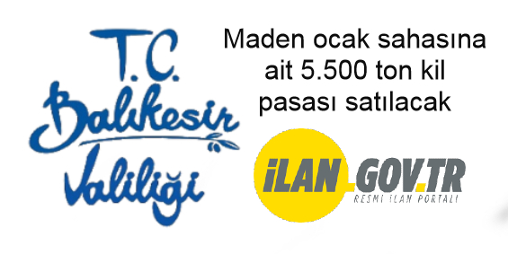 Balıkesir Yatırım İzleme ve Koordinasyon Başkanlığı tarafından Maden ocak sahasına ait 5.500 ton kil pasası satılacak.