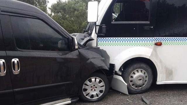 MİNİBÜS İLE OTOMOBİL KAFA KAFAYA ÇARPIŞTI!