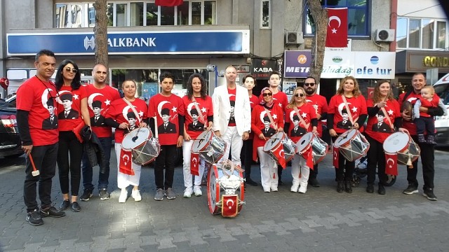 Burhaniye ilçesinde, Hacı Mustafa Müdüroğlu Ortaokulu’nda kurulan Öğretmenler Bandosu beğeni topluyor. Beden Eğitimi Öğretmeni Özgür Aras’ın öncülüğünde oluşturulan bando takımında değişik okullardan 25 öğretmen görev aldı. 14’ü kadın 25 öğretmenin görev aldığı bando takımının değişik etkinliklerde görev alacakları açıklandı. Ay yıldızlı tişörtleriyle gösteri yapan öğretmenler, bandoda görev almaktan mutlu olduklarını anlatırken, Özgür Aras da arkadaşlarına teşekkür etti. Emekli Beden Eğitimi Öğretmeni Emel Baran, “Ben emekli beden eğitimi öğretmeniyim. Daha önce bando takımında hiç görev almadım. İçimde bir ukdeydi. Öğretmenlerden kurulu bu bando ekibini duyunca koşa koşa geldim. Gururla, şevkle arzu ile çalıştım. Burada olmaktan çok mutluyum” dedi. Ruhi Hançer de, ”İlkokuldayken bando takımındaydım. Sonra beden eğitimi öğretmeni oldum. Beden eğitimi öğretmeni olarak çocukları çalıştırmak ayrı bir heyecandı. Şimdi Özgür hocamızın bünyesinde böyle bir güzellik yapalım dedik. Öğretmen arkadaşlarımızla beraber bandomuzu oluşturduk. Güzel bir gösteri yaptığımızı düşünüyorum” dedi. Mine Bunsuz ise, “Ben ilk defa katılıyorum. Çok keyif aldım. Çok mutlu oldum. Gençlerimizde, öğrencilerimizde mutlaka bando çalışmalarına katılmalı. Hocamıza teşekkür ediyorum” dedi. Bandonun kurucusu Beden Eğitimi Öğretmeni Özgür Aras da, “Hayatımıza bir renk katabilmek bir hareket getirebilmek adına böyle bir girişimde bulunduk. Burhaniye’de çalışan tüm öğretmenler, memurlar, yardımcı hizmetlerden oluşan bir boru trampet takımı kurduk. Çok da güzel olduğunu düşünüyorum. Halkımızın sıcak ilgisi bizi çok mutlu etti. Burhaniye’deki öğretmen arkadaşlarımız için de bir şans olduğunu düşünüyorum. Arkadaşlarıma çok teşekkür ediyorum” dedi. (İHA)