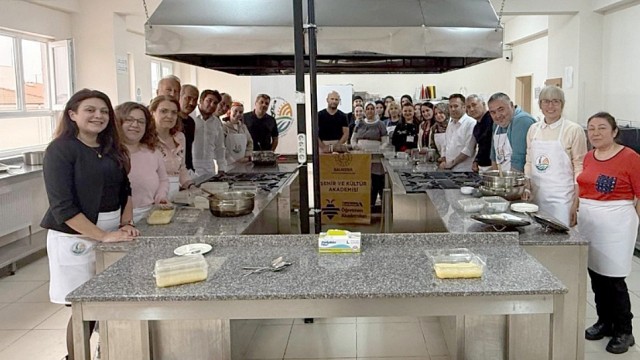 Şehir Kültür Akademisi ikinci dönem 4. Etkinliğinde öğretmenlerimiz Balıkesir'in yöresel tatlarından olan Höşmerim tatlısı yapmayı deneyimledi. Balıkesir İl Milli Eğitim Müdürlüğü’nden yapılan açıklamada, “Şehir ve Kültür Akademisi 4. Hafta faaliyeti Gazi Mustafa Kemal Turizm Mesleki ve Teknik Anadolu Lisesi'nde gerçekleştirildi. Balıkesir denilince ilk akla gelen tatlardan biri olan Höşmerim ile ilgili bilgiler okul öğretmenleri Nilgün Ayer ve Gülten Karaman tarafından öğretmenlerimize aktarıldı. Dörderli gruplara ayrılan akademi öğretmenlerimiz, öğreticilerimizin verdiği tarife ve direktiflere uyarak en güzel höşmerimi yapmaya çalıştı. Isıların ölçülmesinin ardından tatlının mayalanması için beklenildiği esnada Karesi ilçesinde yer alan okulumuz hakkında bilgiler öğretmenlerimizle paylaşıldı. Turizm sektörüne donanımlı bireyler yetiştirilmesine katkı sunan öğretmenlerimiz, güzel coğrafyamız sayesinde bu sektörün yok olmayacağını, kalifiye eleman yetiştirmenin çok özen istediğini ifade ettiler. Höşmerimlerin mayalama işlemini bitiren gruplar tarife uygun bir şekilde höşmerimlerini tamamladı ve tadımını gerçekleştirdi. Faaliyet fotoğraf çekimiyle son buldu ve öğretmenlerimiz kendi elleriyle yaptıkları höşmerimleri ailelerine de tattırmak için yanlarında götürdüler. Şehir ve Kültür Akademisi kapsamında "Balıkesir'in Tatları: Gastronomi Atölyesi" faaliyetinin gerçekleşmesine katkı sunan Akademi Koordinatörü Hilal Şen'e, ev sahipliklerinden dolayı Gazi Mustafa Kemal Turizm Mesleki ve Teknik Anadolu Lisesi okul idaresine, okul öğretmenlerinden Nilgün Ayer ve Gülten Karaman'a teşekkür ederiz.” Denildi. (Bülten)