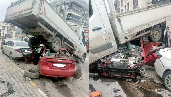 OTOMOBİL PARK HALİNDEKİ KAMYONETİN ALTINA GİRDİ, 3 YARALI