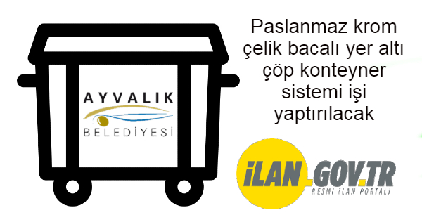 Ayvalık Belediye Başkanlığı tarafından Paslanmaz krom çelik bacalı yer altı çöp konteyner sistemi işi yaptırılacaktır.