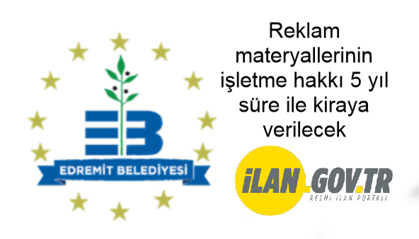 Edremit Belediye Başkanlığı'na ait reklam materyallerinin işletme hakkı 5 yıl süre ile kiraya verilecektir.
