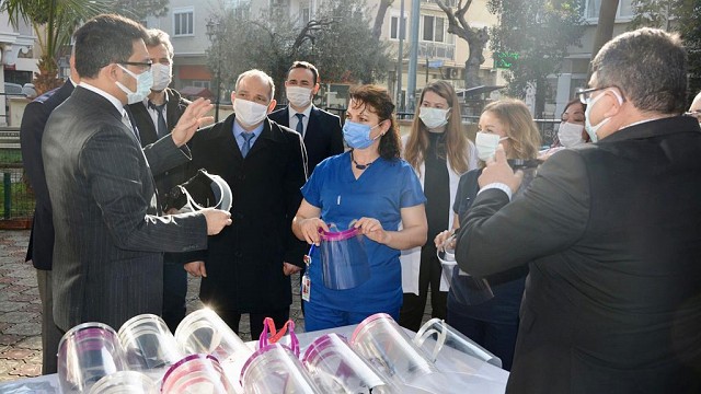 Tüm Dünyayı etkisi altına alan (Covid-19) salgını ile mücadele kapsamında Edremit Kaymakamlığı öncülüğünde İlçe Milli Eğitim Müdürlüğüne bağlı okul ve kurumlarda sağlık çalışanlarına ve öğrencilere destek için yıkanabilir maske ve koruyucu yüz siperlikleri üretilmeye devam ediyor. Pandemi ile mücadele kapsamında Edremit Kaymakamlığı koordinasyonunda Edremit İlçe Milli Eğitim Müdürlüğünün girişimleriyle okul/kurum yöneticileri, öğretmenler ve öğrencilerin çalışmaları sonucu Halk Eğitim Merkezi tarafından 2000 yıkanabilir maske, Mesleki Eğitim Merkezi tarafından da 500 koruyucu yüz siperliği üretimi sağlandı. Üretimi yapılan koruyucu yüz siperlikleri Edremit Hükümet Konağı bahçesinde Kaymakam Turgay Ünsal tarafından sağlık çalışanlarına takdim edildi. Siperlik dağıtım programına; Edremit Kaymakamı Turgay Ünsal, İlçe Milli Eğitim Müdürü Yakup Özbek, İlçe Sağlık Müdürü Mehmet Onur Koçak, Edremit Devlet Hastanesi Başhekimi Op. Dr. Mehmet Ali Koçpınar, Edremit Mesleki Eğitim Merkezi Müdürü Ertan Çınar, Halk Eğitim Merkezi Müdürü Mustafa Duran, MESEM Öğretmenleri ve sağlık çalışanları katıldı.