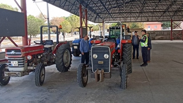 Balıkesir/Bigadiç İlçe Jandarma Komutanlığı Trafik Jandarmasınca, trafik güvenliğinin sağlanması ve trafik kazalarının azaltılmasına yönelik olarak sorumluluk sahasındaki İskele Mahallesinde muayene süresini geçirmiş traktör ve motosikletlerin tespiti yapılarak, Trafik Şube Müdürlüğü koordinesinde 18 Kasım 2022 Cuma günü TÜVTÜRK’e ait seyyar muayene istasyonu kurduruldu. Kurdurulan muayene istasyonunda, (35) traktör ve (30) motosiklet olmak üzere toplam (65) aracın muayenesi yaptırılmıştır. Ayrıca, Trafik Jandarması tarafından traktör ve motosiklet sürücülerine trafik kazalarının önlenmesi ve trafik bilincinin oluşturulması maksadıyla, özellikle “Rops Demiri, Kabin, Reflektör, Sarı Çakar Lamba Takılması, Reflektif Yelek Giyilmesi ile Kask Kullanmaları” hakkında (65) sürücüye “Trafik Eğitimi” verilmiştir. Önümüzdeki dönemde de trafik kazalarının azaltılması ve trafik bilincinin oluşturulması amacıyla, Trafik Jandarmasınca bilgilendirme faaliyetleri devam edecektir. Haber: Aydın DEMİRKAYA