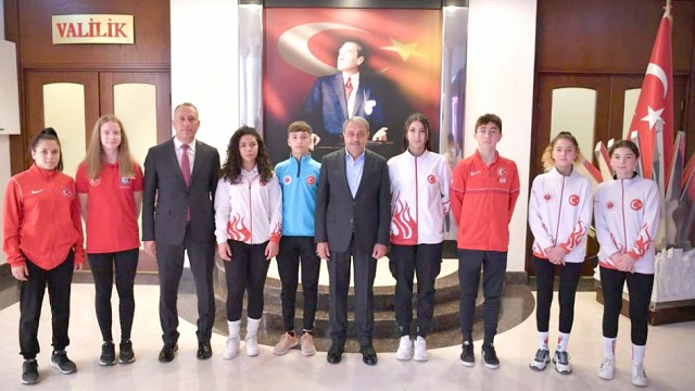 Ulusal ve uluslararası spor müsabakalarında aldıkları derecelerle Balıkesir’in adını dünyaya duyuran sporcular Vali Hasan Şıldak’ı ziyaret ettiler. Spor alanındaki gelişmeleri yakından takip eden Vali Şıldak, Balıkesir’de son yıllarda spora yapılan yatırımların başarıyı beraberinde getirdiğini söyledi. Şıldak, “Sporcularımızın elde ettiği başarılar hepimizi gururlandırdı. Bir şeyi başarmak, onu ne kadar istediğinizle orantılıdır. Bu nedenle her zaman hedeflerinizi büyük tutup onu başarmak için elinizden gelen çabayı gösterin. Gençlerimizin istediklerinde neleri başarabileceğini hep birlikte görüyor ve bununla gurur duyuyoruz. Elbette ki bunlarla yetinmeyeceğiz. İlimiz ve ülkemiz adına daha fazlasını kazanmak için hep birlikte çalışmaya devam edeceğiz” şeklinde konuştu. Balıkesir’e gurur yaşatan; triatlon dalında Türker Kemal Kıyak ve Yaşariye Uluhatun, muay thai dalında Sümeyra Ömrüm Ertekin, Çilem Güngör ve Polat Erdil, paletli yüzme dalında Toprak Toprak, bilek güreşi dalında Didem Çelik, yüzme dalında Azra Nur Öztürk beraberlerinde Gençlik ve Spor İl Müdürü Adem Özalp’in hazır bulunduğu ziyaret anısına kendilerine hediye takdim eden Vali Şıldak’a destekleri dolayısıyla teşekkür ettiler.