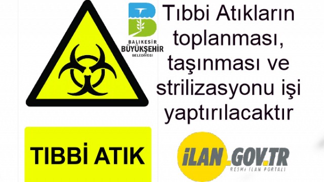 Balıkesir Büyükşehir Belediyesi sınırları içinde faaliyet gösteren sağlık kuruluşlarının tıbbi atıklarının toplanması ve bertarafı için ihaleye çıkıyor.