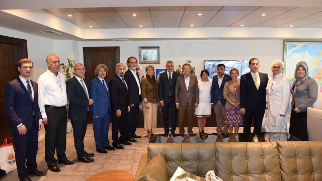 Türkiye Kent Konseyleri Birliği Yürütme Kurulu üyeleri Balıkesir Büyükşehir Belediye Başkanı Ahmet Edip Uğur’u ziyaret ettiler. Başkan Uğur, birliğin faaliyetleri hakkında bilgi alırken, Büyükşehir Belediyesi’nin çalışmaları hakkında da kurul üyelerine bilgilendirmelerde bulundu. KENT KONSEYLERİNDEN BAŞKAN UĞUR’A ZİYARET Türkiye Kent Konseyleri Birliği Yürütme Kurulu üyeleri Balıkesir Büyükşehir Belediye Başkanı Ahmet Edip Uğur’u ziyaret ettiler. Başkan Uğur, birliğin faaliyetleri hakkında bilgi alırken, Büyükşehir Belediyesi’nin çalışmaları hakkında da kurul üyelerine bilgilendirmelerde bulundu. Birliğin Yürütme Kurulu Dönem Başkanı Necati Binici, üç gün süreyle Balıkesir’de olacaklarını söyledi. Balıkesir’de çalışma toplantıları yapacaklarını belirten Binici, “Kent Konseyleri’ni Balıkesir’de de aktif bir şekilde çalışıyor. Birlik olarak Kent Konseyleri arasındaki iletişim ve bilgi ağının sağlanması için çalışıyoruz. Sayıları 60’a yakın il ve ilçe bize üye. Üye sayımızda 100’e yaklaştı. İnşallah bu birlik içerisinde Kent Konseylerinin kent yönetimlerinde daha aktif olmalarını ve birlik ve beraberlik içerisinde olmasını sağlayacak çalışmalar gerçekleştiriyoruz. Adana’da önümüzdeki süreçte yaptığımız toplantıda Türkiye’deki tüm Kent Konseylerinin bir araya getireceğiz. Başlığımızda çok güzel; ‘Kentin vizyonu ve kent konseyi’. Kent konseyleri kentlere neler katabiliyorlar onları konuşacağız” diye konuştu. BAŞKAN UĞUR: “KENT KONSEYLERİ KENT KÜLTÜRÜNÜN TANITILMASINDA ÖNEMLİ” Kent Konseylerinin Balıkesir’de bir araya gelmesinin kendilerini mutlu ettiğini söyleyen Büyükşehir Belediye Başkanı Ahmet Edip Uğur, Kent Konseylerinin kent kültürünün tanıtılmasında önemli bir yapı olduğunu belirtti. Bu tür birlikteliklerin kültürleri birbirine yakınlaştırdığını ifade eden Başkan Uğur, Büyükşehir belediyesi çalışmaları hakkında bilgiler verdi. Balıkesir Büyükşehir Belediyesi bünyesinde il genelinde 6 bin kişi çalıştığını söyleyen Uğur, “Bizim coğrafyamız çok geniş. Alanımız çok geniş. Bir taraf Cunda, diğer taraf Avşa Adası, 5 saatte zor gidersin. İlçelerimizde büyük ilçeler. Bandırma birçok ilden büyük. Ayvalık kış nüfusu 68 bin ama yaz nüfusu 600 bin. Bayram tatilinde 600 bin kişi vardı Ayvalık’ta. 1 milyon 200 bin nüfusumuz yazın 4 milyona çıkıyor” dedi. Ziyarette Birliğin Yürütme Kurulu Dönem Başkanı Necati Binici (Gaziantep) ile kurul üyeleri; Nuray Akçasoy (Eskişehir), Mürsel Sabancı (Karesi), Zeynep Arıkan (Kahramanmaraş), Saim Yavuz (Çanakkale), Hasan Soygüzel (Yalova), Ekrem Aslan (Adana) yeraldı.
