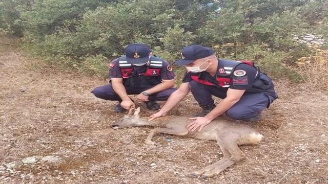 Yaralı Karaca yavrusuna Jandarma şefkati