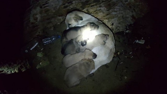 Yavru Köpekleri İtfaiye ekipleri kurtardı
