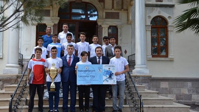 Balıkesir Valiliği, Balıkesir Büyükşehir Belediyesi, İl Emniyet Müdürlüğü, Gençlik Hizmetleri ve Spor İl Müdürlüğü, İl Milli Eğitim Müdürlüğü ve İl Sağlık Müdürlüğü arasında imzalanan prtokol ile "İmkan Bizden Oynamak Sizden" Mahalle Ligi Futbol Turnuvası'nda yıldızlar katagorisinde Edremit’ti temsil eden ve büyük bir başarıya imza atarak il birinciliğini hak eden Mehmet Akif Ersoy Ortaokulu Yıldız Futbol Takımı oyuncu ve yöneticileri kazandıkları kupa ile birlikte Kaymakam Ali Sırmalı'yı makamında ziyaret etti. Ziyarete ilçe Milli Eğitim Müdürü Yusuf Koç eşlik etti. Turnuvanın en büyük ödülü olan İngiltere seyahati öncesi gerçekleşen ziyarette Kaymakam Sırmalı yıldız futbolcularını göstermiş oldukları performanstan ötürü kutlayarak, kazanmış oldukları başarıdan dolayı tebrik etti. Yıldız futbolcularla tek tek tanışarak sohbet eden Kaymakam Sırmalı, “İlimiz genelinde gerçekleşen "İmkan Bizden Oynamak Sizden" Mahalle Ligi Futbol Turnuvası'nda il birinciliğinin ilçemiz okullarından bir okulun kazanması son derece gurur verici. Yıldız futbolcularımızın özverili çalışmaları sonucu başarıyla hak ettikleri turnuvanın en büyük ödülü olan İngiltere gezisinin güzel bir şekilde geçmesini diliyorum. Futbolcularımızın kazandıkları bu başarının aynı şekilde devam etmesini diliyor ve onları ileride büyük futbol kulüplerinde görmek istiyoruz" dedi. Kaymakam Sırmalı ziyaretin ardından sporculara hediyeler vererek hayırlı yolculuklar diledi. (İHA)