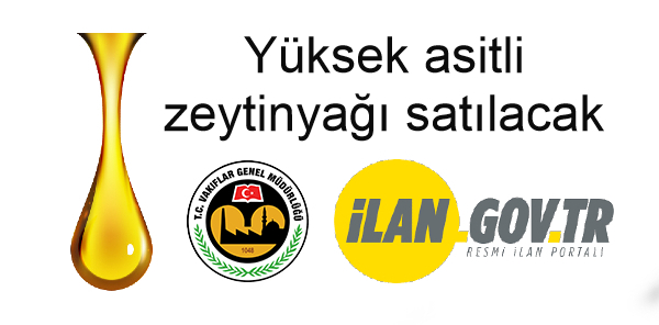 Vakıflar Genel Müdürlüğü Ayvalık Vakıf Zeytinlikleri İşletme Müdürlüğü tarafından 13.000 kg yüksek asitli zeytinyağı satılacaktır.