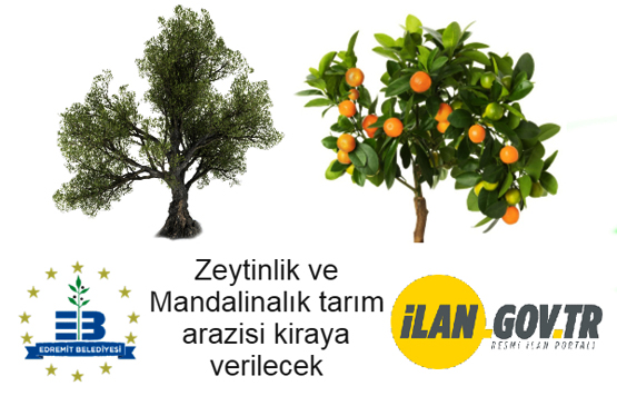 Edremit Belediyesine ait zeytinlik ve mandalinalık tarım arazisi kiraya verilecektir.