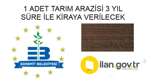 Edremit Belediye Başkanlığı'na ait 1 adet tarım arazisi üç yıl süre ile kiraya verilecektir.