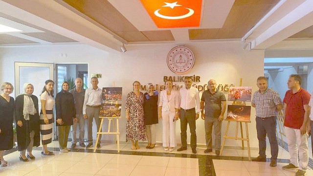 15 Temmuz Demokrasi ve Millî Birlik Günü'nü anmak amacıyla Balıkesir İl Milli Eğitim Müdürlüğü tarafından düzenlenerek ziyarete açılan fotoğraf sergisi, birim amirleri ve Müdürlük’te görev yapan personel tarafından gezildi. Balıkesir İl Milli Eğitim Müdürlüğünden konuyla ilgili olarak yapılan açıklamada, “Sergide, 15 Temmuz 2016 tarihinde gerçekleşen darbe girişimine karşı milletin gösterdiği kahramanlık ve direnişin çeşitli perspektiflerden yansıtıldığı fotoğraflar yer aldı. Her bir tablo, o gecenin farklı bir anını veya duygusunu betimleyerek sergiyi ziyaret edenlere derin bir anlam katması açısından önem taşıdı. 15 Temmuz anısına düzenlenen fotoğraf sergisi, ziyaretçilere bu kara gecenin zorluklarını, kahramanlıklarını ve halkın direnişini görsel bir anlatımla sunarak darbe girişiminin yaşandığı anlardan halkın meydanlara inerek demokrasiyi savunduğu anlara kadar birçok önemli kareyi barındırıyor. Fotoğraf sergisini gezenler, o gece yaşanan dehşeti ve aynı zamanda halkın birlik ve beraberlik içerisinde gösterdiği direnişi daha yakından hissetme fırsatı buldu. Sergide yer alan fotoğraflar, yalnızca olayların kronolojik sıralamasını değil, aynı zamanda duygusal ve insani boyutlarını da gözler önüne serdi. Bu sayede ziyaretçiler, 15 Temmuz'un sadece bir tarih değil, aynı zamanda bir direniş ve birliktelik olduğunu derinlemesine anlamış oldu. Birim amirleri ve Müdürlüğümüzde görev yapan personelimiz tarafından da ziyaret edilen, hem eğitimsel hem de duygusal açıdan zengin bir deneyim sunarak hafızalarda kalıcı izler bırakan 15 Temmuz fotoğraf sergisi; darbe girişimi sırasında yaşananları belgelerken, aynı zamanda halkın direnişini, demokrasiye olan inancını ve birlik beraberlik ruhunu yansıtıp o gece yaşanan anları ve halkın gösterdiği büyük cesareti gözler önüne serdi.” denildi.