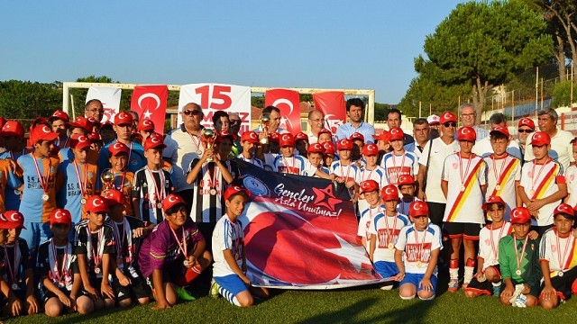 Ayvalık ilçesinde; 15 Temmuz hain darbe girişiminin yıldönümü nedeniyle ’15 Temmuz Şehitleri Anma ve Demokrasi Zaferi’ programı kapsamında; Balıkesir Amatör Spor Kulüpleri Federasyonu (ASKF) Edremit Körfezi Temsilciliğinin yanı sıra Ayvalık Kaymakamlığı, Ayvalık Belediyesi, Ayvalık Gençlik Hizmetleri ve İlçe Spor Müdürlüğü tarafından düzenlenen futbol turnuvasının kupaları dağıtıldı. Ayvalık Hüsnü Uğural Stadyumu’nda başlayan ve 3 gün süren dörtlü turnuvada; Armutçuk Spor, Yenimahalle 2008 Spor, Küçükköy Spor ve Barbaros Sefa Spor kulüplerinin U-12 takımları yer aldı. Ayvalık Kaymakamı Namık Kemal Nazlı’nın yanı sıra; Gençlik Hizmetleri İlçe Spor Müdürü Cem Hamzaoğlu, Ayvalık Belediye Başkanı Rahmi Gençer, 1. Lig takımlarından Akhisar Spor’un eski Teknik Direktörü Cihat Aslan, Ayvalık Belediye Başkan Yardımcısı Gökay Bacan ve Balıkesir ASKF Edremit Körfezi Temsilcisi Cemal Erhanoğlu, daire amirleri, kulüp yöneticileri, antrenörler ve sporcuların hazır bulunduğu turnuvanın ödül töreninde turnuvaya takılan 4 takıma da şampiyonluk kupası verildi. Turnuva ile ilgili açıklamalarda bulunan Ayvalık Gençlik Hizmetleri ve İlçe Spor Müdürü Cem Hamzaoğlu da, ‘Gençler Asla Unutmaz sloganıyla düzenledikleri 3 gün süren turnuva da 4 takımı da şampiyon olarak kabul ettiklerini belirterek, “Çünkü bu çocuklarımız burada vatanları ve milletleri için bir araya gelerek bu turnuvayı gerçekleştirdiler. Bizde bu turnuvada gösterdikleri başarı nedeniyle kupa ve madalyalarla ödüllendirilecek” dedi. Turnuvanın kupa töreninde; takımların emektar personeli ve antrenörlerine de katılım sertifikaları da verildi. (İHA)