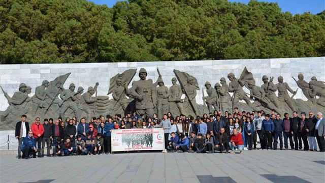 18 MART ŞEHİTLERİ ANMA GÜNÜ VE ÇANAKKALE ZAFERİNİN 103. YILDÖNÜMÜNDE 103 ÖĞRENCİMİZLE ÇANAKKALEDEYİZ 18 Mart Şehitleri Anma Günü ve Çanakkale Deniz Zaferi’nin 103. Yıl Dönümü nedeniyle “BENGİ Değerlerimizle Adım Adım Projesi” kapsamında Edremit İlçe Milli Eğitim Müdürlüğü tarafından 15 yaşında 103 öğrenci 15’lilerle buluşturuldu. Edremit İlçe Milli Eğitim Müdürlüğünden konuyla ilgili olarak yapılan basın açıklamasında, “Balıkesir Valisi Ersin Yazıcı himayesinde başlatılan ve İl Milli Eğitim Müdürü Yakup Yıldız koordinatörlüğünde yürütülen BENGİ Projesi kapsamında Edremit İlçesindeki liselerin 9. sınıflarında öğrenim gören 103 öğrenci, Edremit İlçe Milli Eğitim Müdürü Yusuf Koç başkanlığında, okul müdürleri ve görevli öğretmenler eşliğinde Çanakkale Gelibolu Milli Parkına giderek tarihi alandaki şehitlikleri ziyaret ettiler. Edremit Kazdağı Turizm AŞ. sponsorluğunda gerçekleştirilen ziyarette öğrenciler bu projeye katılmaktan dolayı çok mutlu olduklarını, 1915 yılında gerçekleşen Çanakkale Deniz Zaferinde kendileriyle aynı yaşlarda olan ecdatlarının emanetlerine sahip çıkmak, onlara duydukları saygı ve minnet duygularını belirtmek ve mezarları başında Fatiha okumak için burada bulunduklarını söylediler. İlçe Milli Eğitim Müdürü Yusuf Koç; “Çanakkale Zaferi Bir Milletin Yeniden Doğuşuna Milat Olmuştur.” Bu anlamlı ziyarette öğrencileri yalnız bırakmayan İlçe Milli Eğitim Müdürü Yusuf Koç ” Çanakkale Zaferinin bir milletin yeniden doğuşuna milat olduğunu, onlarca Dünya devletinin bir araya gelerek Mehmetçikle karşı karşıya geldiğini, kısıtlı imkânlara rağmen Mehmetçiğin olağanüstü gayretleri sonucunda savaşın kazanıldığını belirtti. İlçemiz liselerinde 9. Sınıflarda öğrenim gören 15 yaşındaki 103 öğrenciyi; 15’lilerle buluşturarak, Çanakkale Zaferinin 103. yıldönümünde, Hicrî takvime göre 1315 doğumluların Çanakkale Cephesindeki asker ihtiyacını karşılamak için askere çağrıldığı, savaş sürecinin manevi önemini kavramak ve ecdadımıza duyduğumuz saygı ve minnet duygusunun ifadesi olarak burada bulunduklarını söyleyerek, projeye katılan öğrenci, öğretmen, yönetici ve Kazdağı Tur firma yetkililerine desteklerinden dolayı teşekkür etti. Çanakkale Destanı Tanıtım Merkezi ziyareti ile başlayan program, 57. Alay Şehitlikleri, Conkbayırı, Abide ve Koca Seyit tarihi alanının gezilmesi ile devam etti. 103 Kişilik dev öğrenci Korosu, Çanakkale Destanı Tanıtım Merkezinde 15’lilere hitaben yazılmış bir ağıt olan Tokat türküsünü Müzik öğretmenleri eşliğinde seslendirerek Çanakkale Cephesinde şehit olan 15’lilere bu toprakları bizlere vatan olarak bıraktıkları için minnetlerini dile getirdiler ve 15’li olmanın maneviyatını yaşadılar.” denildi.