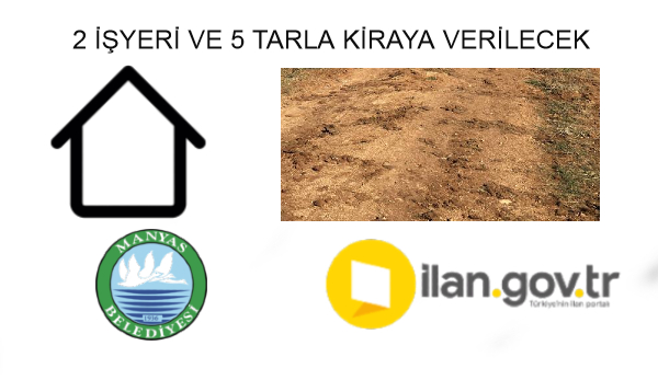 Manyas Belediye Başkanlığı'nca 2 adet iş yeri ve 5 adet tarla kiraya verilecektir.