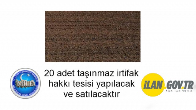 20 adet taşınmaz irtifak hakkı tesisi yapılacak ve satılacaktır