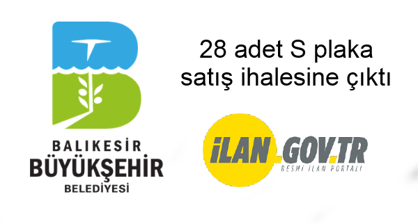 Balıkesir Büyükşehir Belediyesi 28 adet "S" plaka satış ihalesine çıktı.
