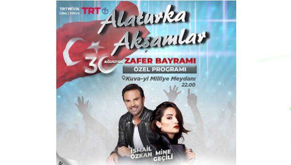 Altıeylül Belediyesi katkılarıyla 30 Ağustos Zafer Bayramı coşkusu, “Alaturka Akşamlar” özel programıyla Kuva-yi Milliye Meydanı’nda saat 22.00’de sizlerle olacak. İsmail Özkan ve Mine Geçili’nin sahne alacağı gecede TRT Müzik Altıeylül’den gerçekleştireceği canlı yayınla 130 ülkede Zafer Bayramını Coşkusunu yaşatacak. 30 Ağustos Zafer Bayramı coşkusunu hep birlikte yaşamak için Kuva-yi Milliye Meydanında buluşuyoruz. 30 Ağustos Çarşamba günü İsmail Özkan ve Mine Geçili’nin yer aldığı “Alaturka Akşamlar” TRT Müzik’ten canlı yayınla müzik severleri bir araya getirecek. Tüm Balıkesirliler davetlidir.