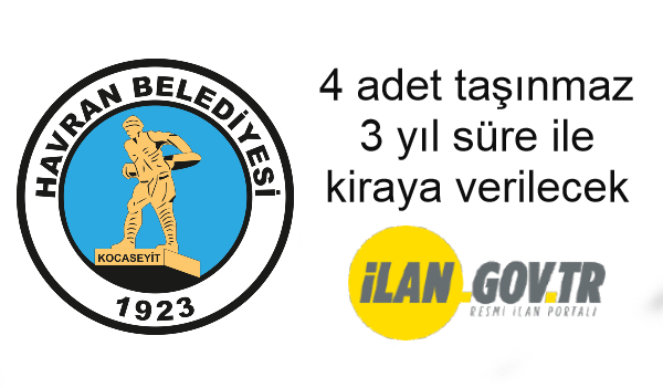 Havran Belediye Başkanlığı'na ait 4 adet taşınmaz 3 yıl süre ile kiraya verilecektir.