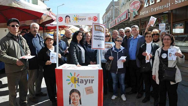 Küçükkuyu’da faaliyet gösteren bazı STK’ların üyeleri Küçükkuyu’da kurular Cuma pazarında kurdukları stantta “Hayır” broşürü dağıttı. CHP Belde Teşkilatı, Atatürk Düşünce Derneği, Alevi Kültür Derneği ve Kazdağı Koruma Derneği üyeleri 16 Nisan’da yapılacak referandum çalışmaları kapsamında kalabalığın yoğun olduğu Cuma pazarında gün boyu vatandaşlara broşür dağıttılar. Haber ve fotoğraf: Hanife ERDİNÇ