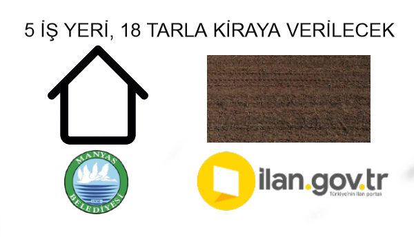 Manyas Belediye Başkanlığı'nca 5 adet iş yeri ve 18 adet tarla kiraya verilecektir.