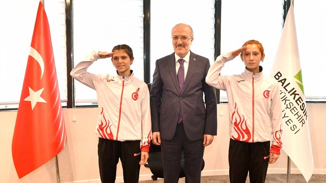 GÖĞSÜMÜZÜ KABARTTILAR 2-4 Mart tarihleri arasında Fransa’nın Val De Reuil kentinde düzenlenen Dünya Salon Atletizm Şampiyonası’nda dünya şampiyonu olan Burhaniyeli özel sporcular önceki gün Antrenörleri Deniz Erenoğlu ile birlikte Balıkesir Büyükşehir Belediye Başkanı Zekai Kafaoğlu’nu makamında ziyaret ettiler. 1500 metrede dünya şampiyonu olan ve 800 metrede dünya ikinciliği ünvanını elde eden 14 yaşındaki Muhsine Gezer ile 400 metrede dünya şampiyonu olan 18 yaşındaki Sevim Demircan aldıkları madalyaları Büyükşehir Belediye Başkanı Zekai Kafaoğlu’na hediye ettiler. Balıkesir Büyükşehir Belediye Başkanı Zekai Kafaoğlu, genç sporcularımızı kutlayarak altın ile ödüllendirirken; Fransa’da İstiklal Marşımızı dinletmiş ve Türk Bayrağı’nı göndere çektirmiş olmalarından dolayı ayrıca tebrik etti. Bu başarıyı Afrin’de kahramanca mücadele veren Türk Ordusu’na armağan ettiklerini belirten sporcular Muhsine Gezer ve Sevim Demircan asker selamı vererek çektirdikleri fotoğraf ile ziyareti ölümsüzleştirdiler.