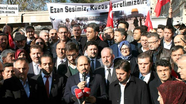 AK Parti Balıkesir İl Teşkilatı tarafından, ABD'nin Kudüs'ü İsrail'in başkenti olarak tanımasına tepki yağdı. Cuma namazı sonrası Zağnos Paşa Camii önünde toplanan yüzlerce kalabalık, ellerinde Türk bayrakları ile tekbir getirerek ABD'yi protesto etti. AK Parti Balıkesir İl Başkanı Av. Hasan Demiraslan, cuma namazı çıkışı Zağnos Paşa Camii önünde basın açıklaması yaptı. Demiraslan, Amerika Birleşik Devletleri Başkanı Donald Trump’ın hukuksuz Kudüs açıklamasının insanlık vicdanını yaraladığını ve bölgedeki sorunları derinleştirdiğine dikkat çekerek, "Cumhurbaşkanımızın kesin şekilde ilan ettiği üzere Kudüs, tüm Müslümanların kırmızı çizgisidir. Bu, bölgemizde barışı ve istikrarı tehdit etmeye yönelik bir adımdır. Alınan kararın, İsrail ve Filistin toplumları arasındaki husumeti arttırmaktan başka sonucu olmayacaktır. Asla kabul edilemez gördüğümüz bu karardan en kısa sürede dönülmelidir" dedi. İslam'ın sesini susturmak ve kendi kurguları olan terör örgütlerini bahane ederek Müslümanların iradelerini esir etmek isteyenlerin tarihte defalarca olduğu gibi yine hüsrana uğrayacaklarını söyleyen AK Parti Balıkesir İl Başkanı Hasan Demiraslan, "İslam’ın harem-i izzeti olan Kudüs’ü tacize teşebbüs edenler, Türk'üyle, Arap'ıyla, Kürt'üyle tüm Müslümanlarda Selahaddin Eyyubi ruhunun dirilip karşılarına dikildiğini göreceklerdir. Türkiye’nin, insanlığın silueti olan Kudüs’ün mahremiyetine yönelik bu saldırı karşısında Cumhurbaşkanımızın liderliğinde ortaya koyduğu güçlü tepkinin sonuna kadar arkasındayız. Dünyadaki tüm Müslümanların, İslam İşbirliği Teşkilatı Zirve Dönem Başkanı olan Türkiye’nin çağrısına kulak vererek Kudüs’e sahip çıkacağına inanıyoruz. Diğer taraftan, Amerika Birleşik Devletleri’nin bu kararı, dünyada yaşanan adaletsizliğin yeni bir tezahürüdür. Bu hadise, Cumhurbaşkanımızın, küresel sistemin çarpıklıklarına ve adaletsizliklerine karşı uzun zamandır dile getirdiği 'Dünya 5’ten büyüktür' itirazının haklılığını teyit etmiştir. İslam’ın kalbine saplanmaya çalışılan bu hançere, ancak tüm Müslümanların iki elin parmaklarının kenetlenmesi gibi bütünleşmesiyle engel olabiliriz. Biz Müslümanlar olarak Kudüs davası ve ümmetin birliği için her türlü çabayı göstermeye, her türlü fedakarlıkta bulunmaya hazırız. Kudüs davasının sonuna kadar takipçisi olacağız" şeklinde konuştu. AK Parti Balıkesir İl Teşkilatı tarafından düzenlenen basın açıklamasına milletvekilleri, belediye başkanları, siyasi parti temsilcileri, STK'lar, partililer ve yüzlerce vatandaş katıldı. (İHA)