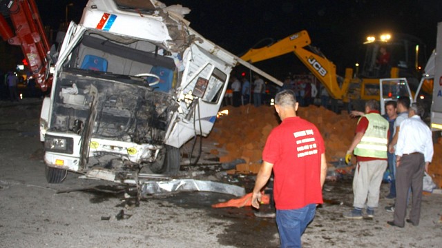 Edremit İlçesi Akçay kavşağında tuğla yüklü kamyonun otomobille çarpışması sonucu zincirleme kaza oldu. Sürücüsünün kontrolü yitirdiği kamyon park halindeki 2 kamyonete, otomobil ise, aynı yönde giden 3 otomobille çarpıştı. Kazada toplam 12 kişi yaralandı. 2 kişi durumları ağır halde hastaneye kaldırılırken, Edremit Devlet Hastanesi ve Özel Hastanelere sevk edilen diğer kazazedelerin hayati tehlikesinin olmadığı bildirildi. Edremit-Akçay’daki zincirleme kaza Çarşamba Akşamı saat 22.00 sıralarında, Akçay Kavşağı'nda meydana geldi. Sürücülerinin kimlikleri öğrenilemezken 45 VZ 397 plakalı tuğla yüklü kamyon ile 10 BCP 22 plakalı otomobil, İzmir- Çanakkale Karayolu Akçay Kavşağı'nda çarpıştı. Kazadan sonra sürücüsünün direksiyon hakimiyetini yitirdiği kamyon, park halindeki 2 kamyonete; otomobil ise araçla aynı yönden gelen 3 ayrı otomobille çarpışınca durabildi. Kazada tüm araçlarda toplam 12 kişi yaralandı. Yaralılardan 3'ü kaza yerindeki ambulansta tedavi edildi. Diğer 9 yaralı ambulansla çevre hastanelere kaldırıldı. Tedaviye alınan yaralıların hiçbirinin hayati tehlikesinin bulunmadığı belirtildi. Jandarma ekipleri kaza yerinde güvenlik önlemleri alarak kontrollü geçiş sağladı. Kaza alanına çağrılan 2 vinçle kamyon kaldırıldı. Devrilen kamyonun altında herhangi bir kişinin olma ihtimaline karşı, sağlık ekiplerinin bir süre bekledi. Olay yerine gelen Edremit Kaymakamı Ali Sırmalı; gazetecilere yaralılar hakkında bilgiler verdi. Haber: Pervin BÖLÜKBAŞI