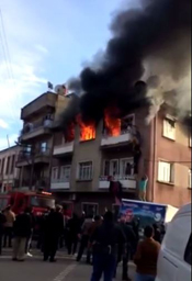 Balıkesir’in Edremit ilçesinde, alev topuna dönen evlerinin balkonunda mahsur kalan 5 kişilik aile vatandaşlar tarafından insan zinciri yapılarak kurtarıldı. Hekimzade Mahallesi Bayramyeri mevkiindeki üç katlı apartmanda yangın çıktı. Apartmanın 3'üncü katında elektrik kontağından çıktığı iddia edilen yangını görenler, durumu polis ve itfaiye ekiplerine bildirdi. Baba Emrah Demirci (32), önce eşi Reyhan (30) ile 14 yaşındaki kızı Rabia'ı dışarı çıkardı. Ardından 2 kızını daha kurtarmak için geri dönen Emrah Demirci, alevlerin daireyi tamamen sarması üzerine içeride kaldı. Fedakar baba, çocukları 2 yaşındaki Nesrin ve 10 yaşındaki Emre'yi dışarı çıkaramayınca evin balkonuna çıkıp yardım istedi. Alevlerin büyümesi üzerine çevre sakinleri üçüncü kata kadar tırmanarak insan zinciri oluşturdu. Aile alevlerden son anda kurtarıldı. Bu anlar ise amatör kameralara yansıdı. (İHA)